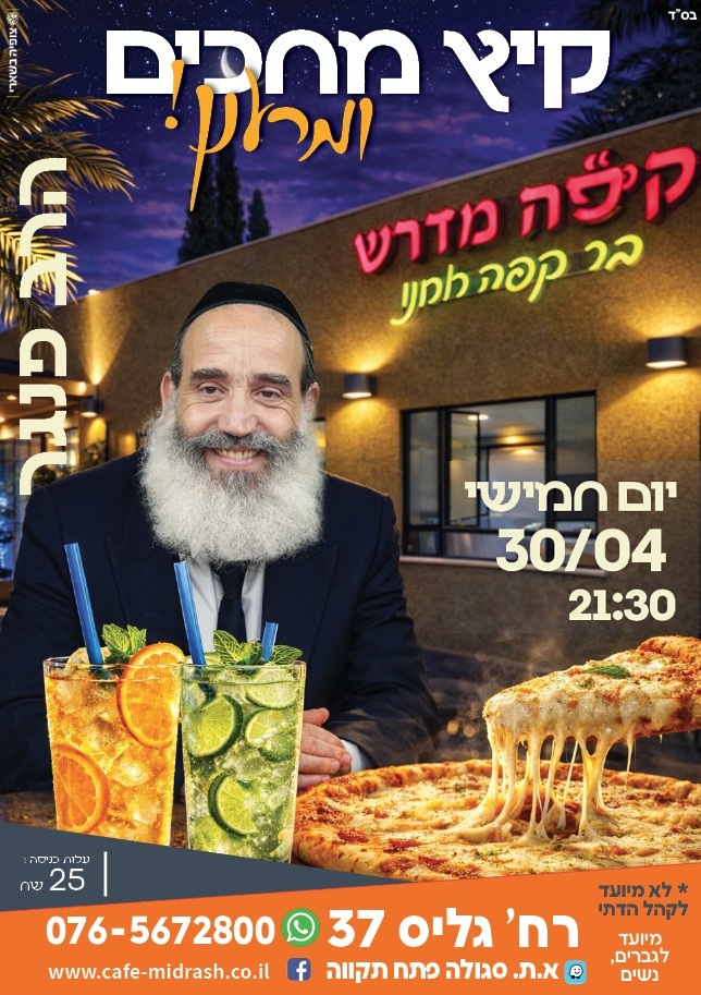 כתובתנו: גליס 37, א.ת. סגולה, פתח תקווהכותבים ב-Waze "קפה מדרש" ומגיעיםמספר וואטסאפ לבירורים: 076-5672800